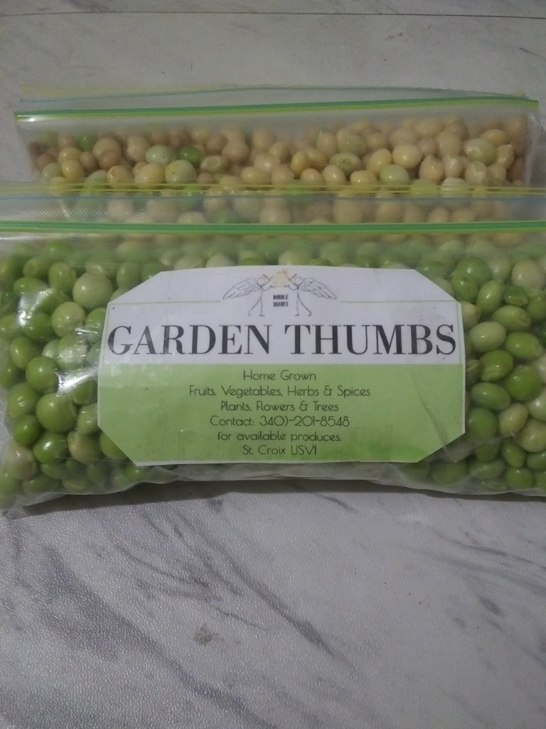 What makes it different from. home grown peas to can peas. I’m going to cut to the chase. Freshly Picked peas are healthier and you get a lot more vitamins. The flavors from a freshly picked peas are lot more tastier. Garden Thumbs is known for it’s food growing in St. Croix USVI. The grounds are nurtured with the natural minerals and proteins that are perfect for growing these foods. No pesticide chemical control substance. Just the hands that plants, sun, rain/water, soil that are beneficial to the plant. Garden Thumbs are always growing to its best. Farmers and customers are welcome to gain all natural benefits the agricultural company likes to grow. That being said just a friendly reminder. Grown foods are the best ingredients in keeping your body healthy. Now in season are the SWEET PEAS for you. Contact at 3402018548 for more of what we got available for you to eat.😁👍